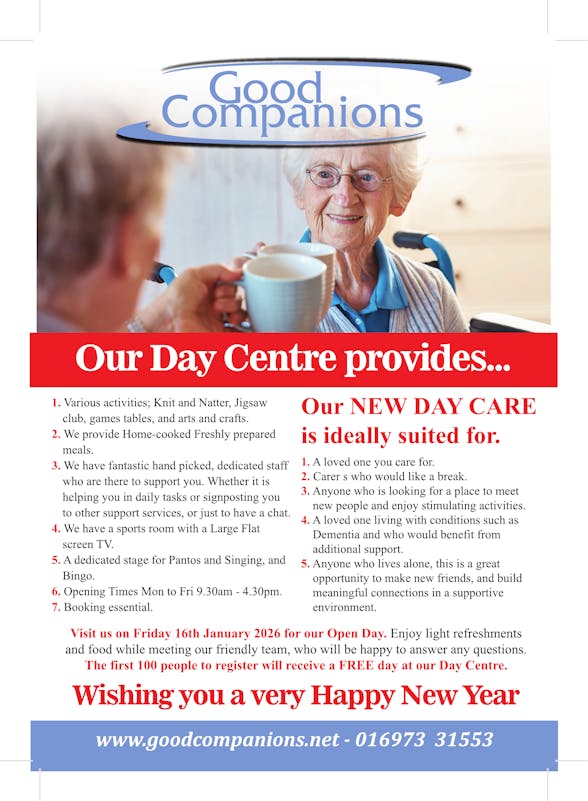 © Good Companions Day Care Centre, Silloth. All details subject to availability. Booking required.